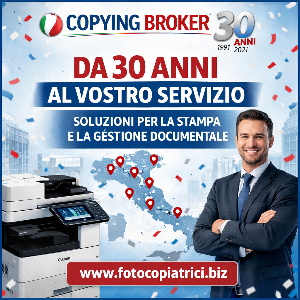 Con 30 anni di storia alle spalle, Copying Broker rappresenta un modello di crescita economica sostenibile, capace di generare occupazione, sviluppare competenze professionali e supportare le imprese italiane nella loro evoluzione tecnologica. La solidità del suo approccio, unita al rispetto dei valori sociali e alla forte identità Made in Italy, conferma il ruolo dell’azienda come partner strategico per le imprese italiane e come attore economico responsabile sul territorio nazionale.