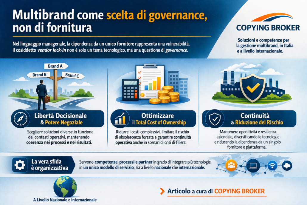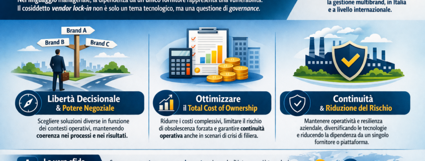 Dal punto di vista del top management, il multibrand non è sinonimo di complessità, ma di controllo. Quando correttamente orchestrato, permette di ottimizzare il Total Cost of Ownership, ridurre il rischio di obsolescenza forzata e garantire continuità anche in scenari di crisi di filiera.